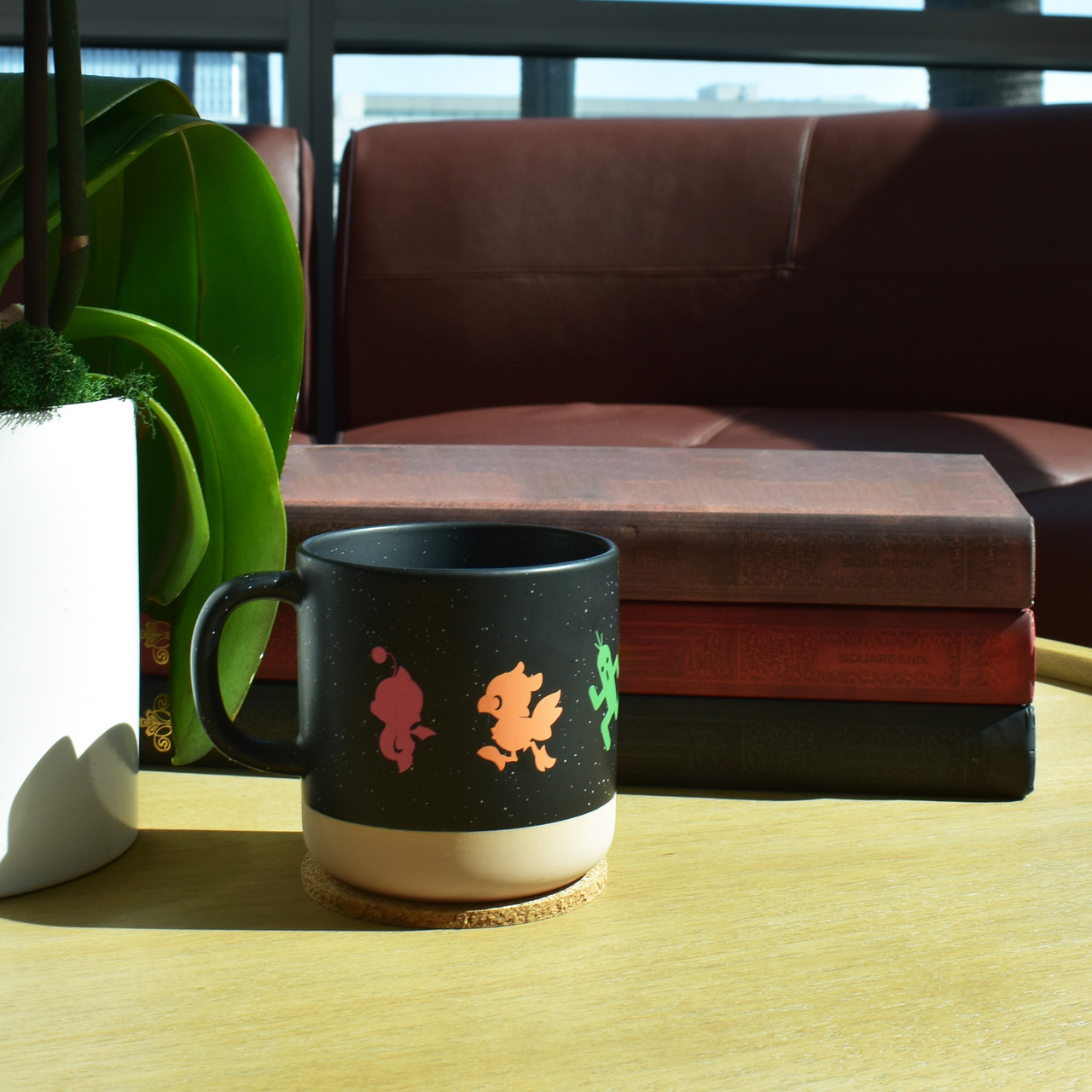 Start your day with a touch of Final Fantasy charm! This sleek black mug features a pink Moogle, yellow Chocobo, and green Cactuar, bringing three of the series' most beloved creatures together in one stylish design. Perfect for your morning coffee, tea, or a well-earned break between adventures.