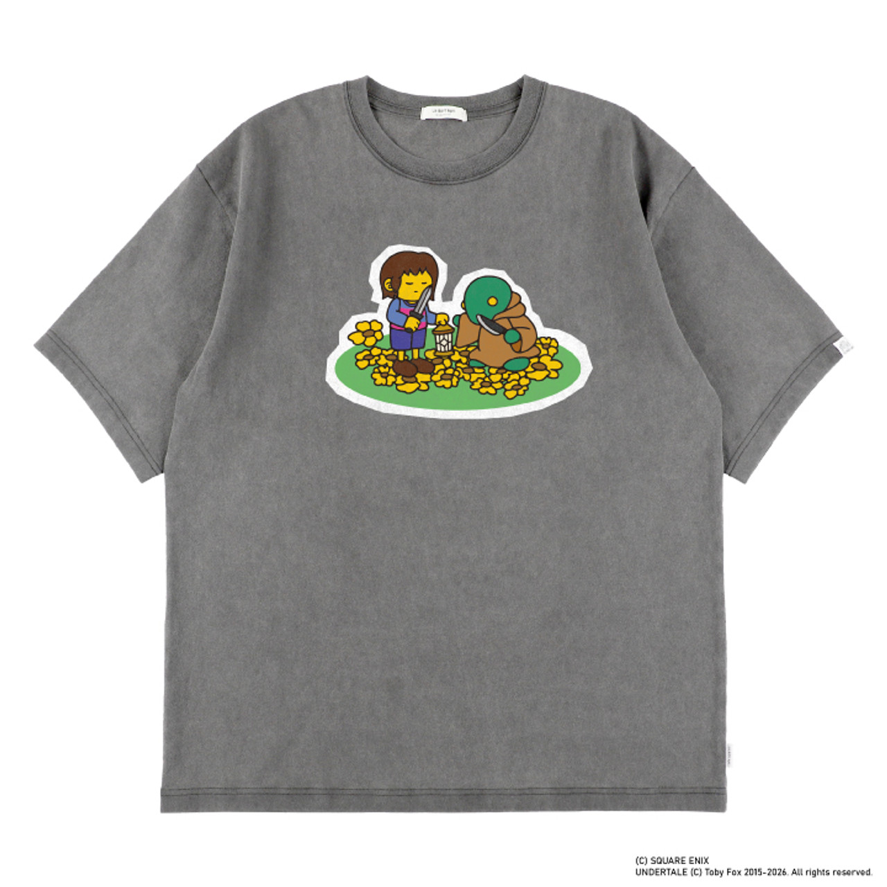 This grey T-shirt showcases the Human from UNDERTALE and a Tonberry from the FINAL FANTASY series on the chest. The illustrations are original works by illustrator LAZY PIZZA DELIVERY.